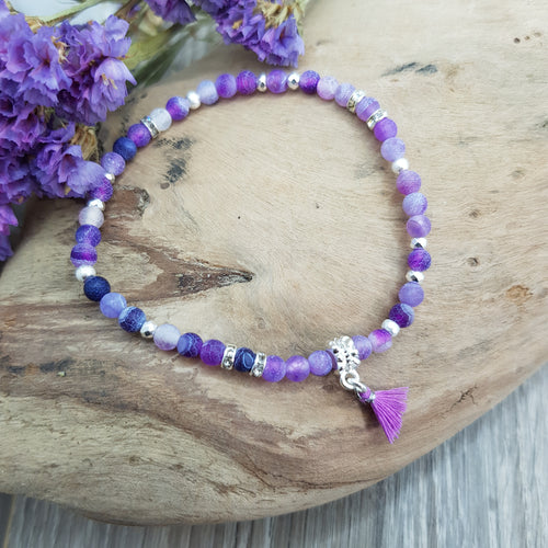 Armband Achat Lila mit Anhänger (4mm)
