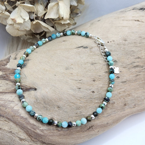 Fusskette Aquamarin/ Amazonit/ Türkis/ Apatit (2mm)